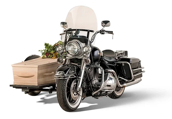 Maatwerk uitvaart met motor en zijspan, volledig afgestemd op de persoonlijke wensen van de familie met mogelijkheid voor foto reportage.